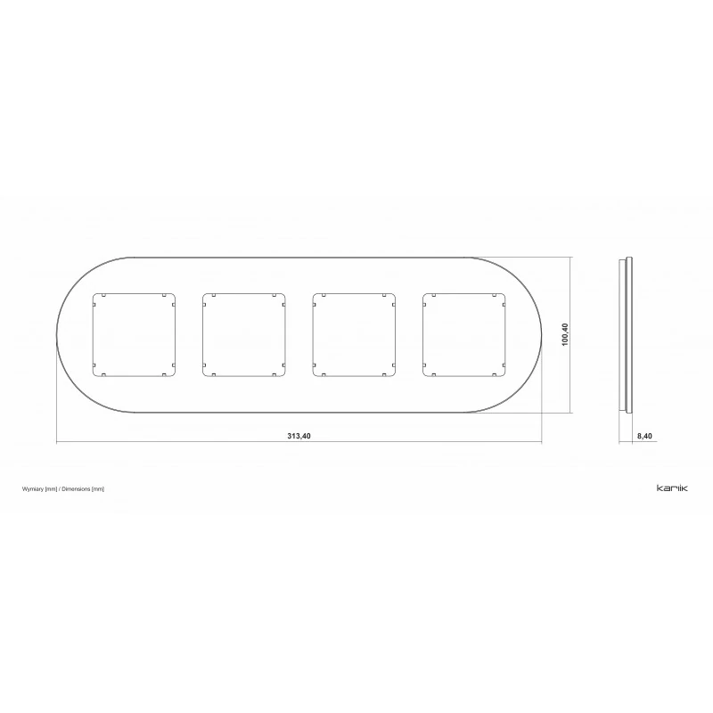 Ramka poczwórna okrągła serii ICON firmy KARLIK z efektem szkła w kolorze szarym z białym spodem. Do ramki należy dokupić osobno mechanizm tej samej serii oraz marki. Ramki instalacyjne ICON dostępne są w wersji okrągłej, zaokrąglonej oraz kwadratowej w krotnościach 1-5, w różnych wersjach kolorystycznych.