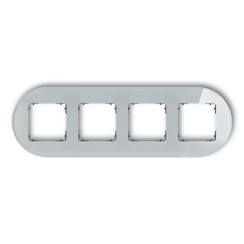 Ramka poczwórna okrągła serii ICON firmy KARLIK z efektem szkła w kolorze szarym z czarnym spodem. Do ramki należy dokupić osobno mechanizm tej samej serii oraz marki. Ramki instalacyjne ICON dostępne są w wersji okrągłej, zaokrąglonej oraz kwadratowej w krotnościach 1-5, w różnych wersjach kolorystycznych.