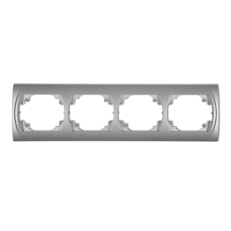 Ramka poczwórna 7LRH-4 serii LOGO firmy KARLIK posiada stopień odporności IP20. Ramka instalacyjna 7LRH-4 jest w stanie pomieścić 4 gniazdka. Poczwórna ramka instalacyjna serii LOGO firmy KARLIK jest przeznaczona do użytku wewnętrznego. Wymiary srebrnej metalicznej ramki 7LRH-4 to: szerokość- 294, 70 mm, wysokość- 82 mm, głębokość- 12, 30 mm.