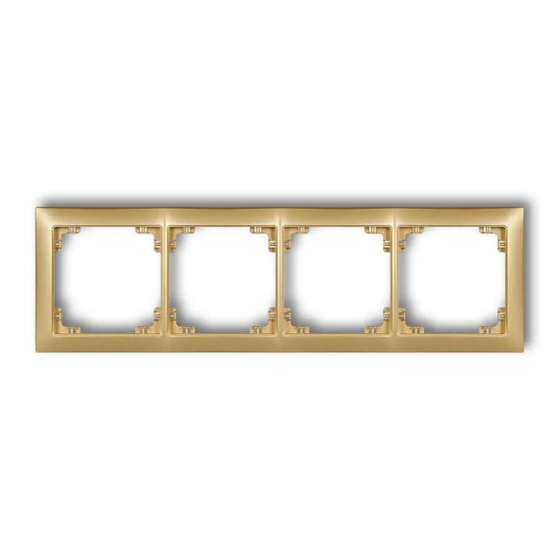 Ramka instalacyjna poczwórna 29DRSO-4 serii DECO SOFT firmy KARLIK jest w kolorze złotym. Mechanizmy i ramki DECO sprzedawane są osobno. Ramki DECO Soft nie są kompatybilne z gniazdami podwójnymi DECO. Do gniazda podwójnego należy kupić ramkę DECO. Produkty DECO SOFT przeznaczone są do montażu pionowego, jak i poziomego.
