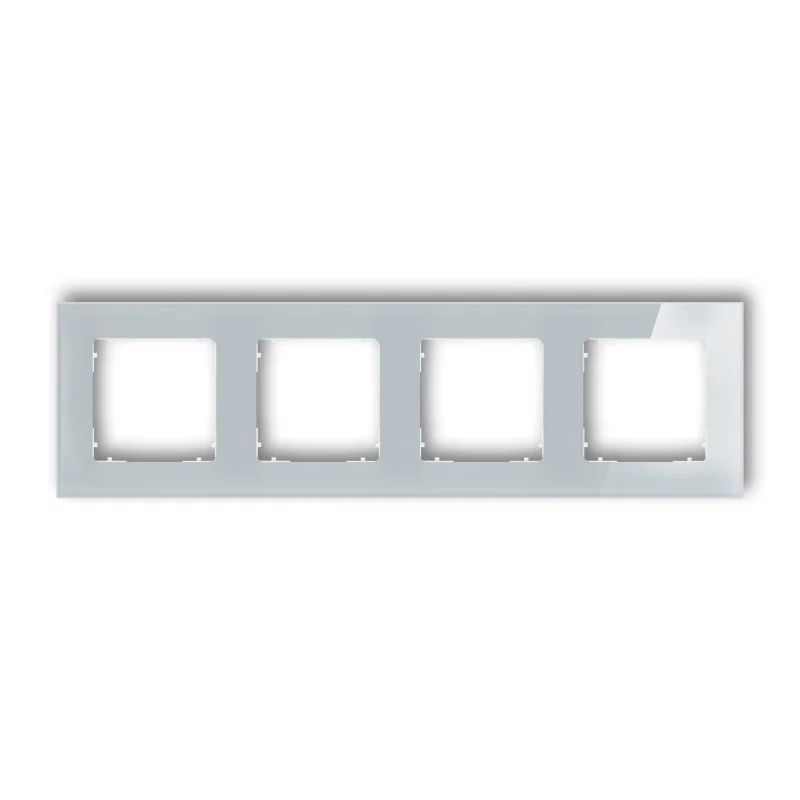 Ramka poczwórna kwadratowa serii ICON firmy KARLIK z efektem szkła w kolorze szarym z białym spodem. Do ramki należy dokupić osobno mechanizm tej samej serii oraz marki. Ramki instalacyjne ICON dostępne są w wersji okrągłej, zaokrąglonej oraz kwadratowej w krotnościach 1-5, w różnych wersjach kolorystycznych.