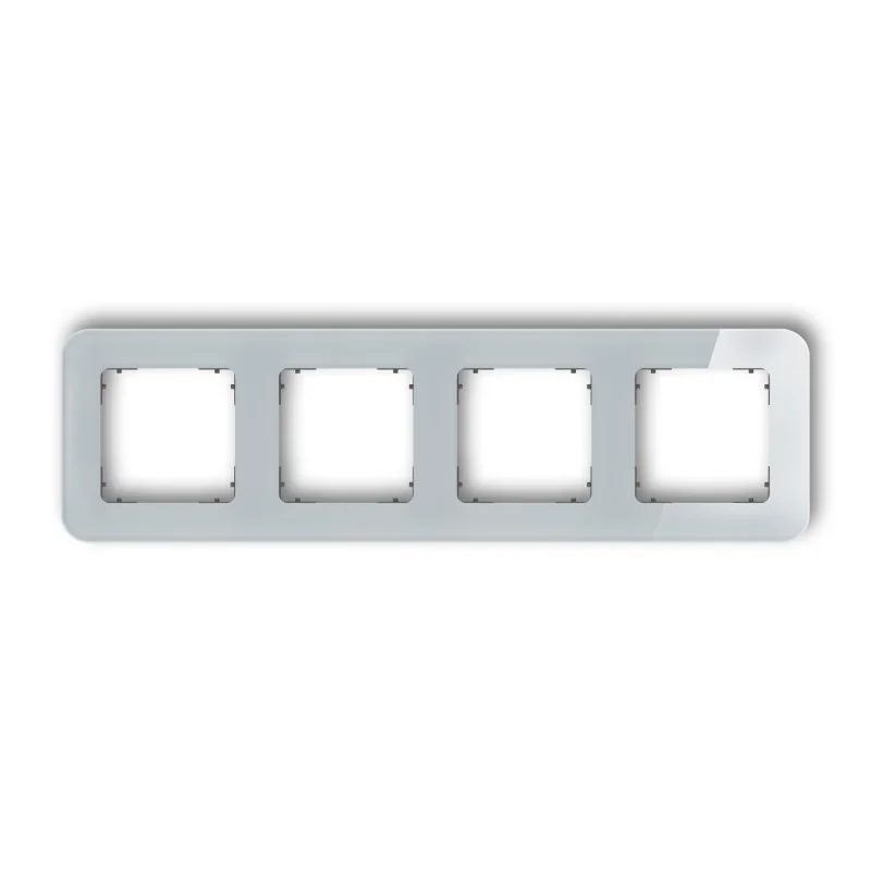 Ramka poczwórna zaokrąglona serii ICON firmy KARLIK z efektem szkła w kolorze szarym z grafitowym matowym spodem. Do ramki należy dokupić osobno mechanizm tej samej serii oraz marki. Ramki instalacyjne ICON dostępne są w wersji okrągłej, zaokrąglonej oraz kwadratowej w krotnościach 1-5, w różnych wersjach kolorystycznych.