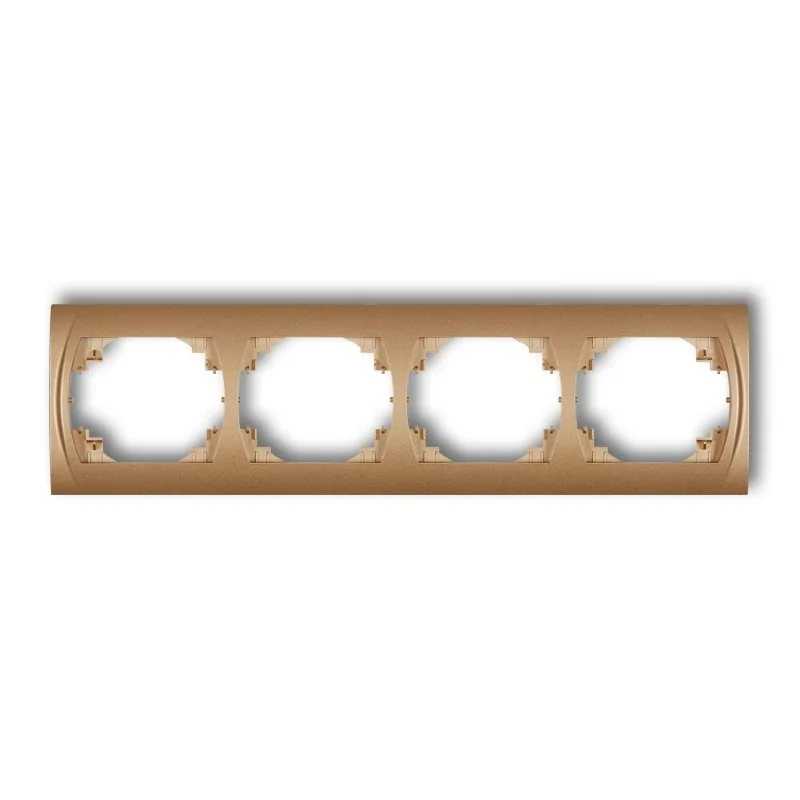Ramka poczwórna 8LRH-4 serii LOGO firmy KARLIK posiada stopień odporności IP20. Ramka instalacyjna 7LRH-4 jest w stanie pomieścić 4 gniazdka. Poczwórna ramka instalacyjna serii LOGO firmy KARLIK jest przeznaczona do użytku wewnętrznego. Wymiary złotej ramki 8LRH-4 to: szerokość- 294, 70 mm, wysokość- 82 mm, głębokość- 12, 30 mm.