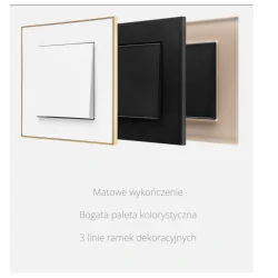 - Stopień ochrony IP: IP20 / IP44 (po zastosowaniu uszczelki IP44 do ramki)