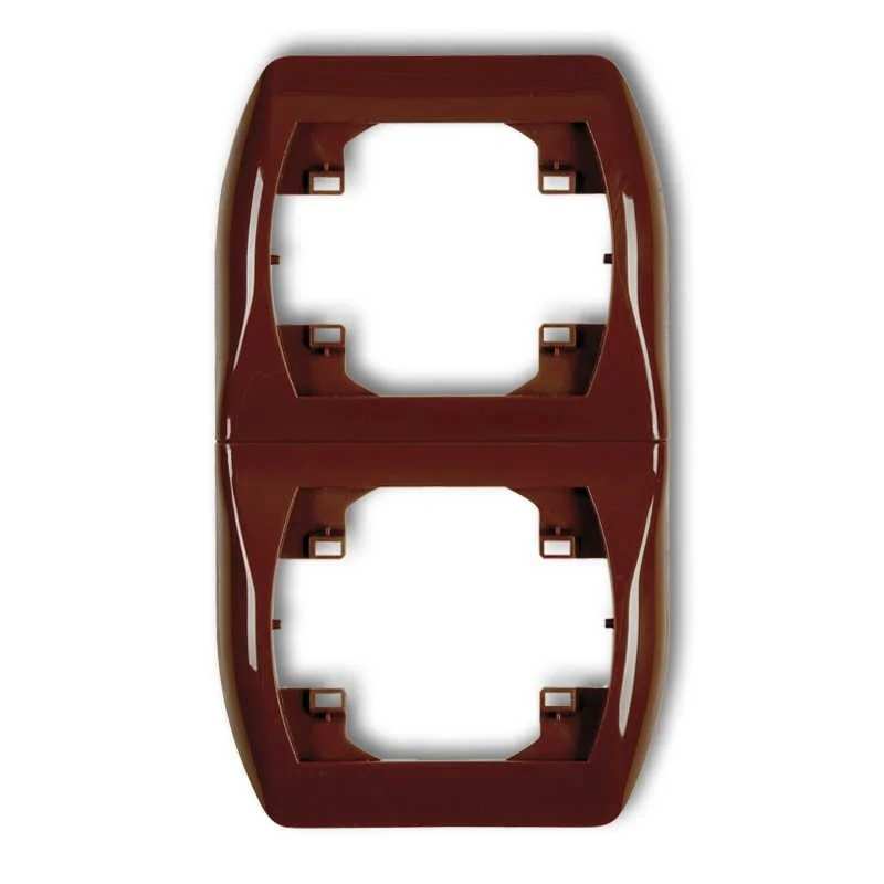 Ramka podwójna pionowa 4RV-2 w kolorze brązowym podtynkowej serii TREND marki KARLIK. Ramka posiada otwory na dwa moduły, które są dokupienia osobno.