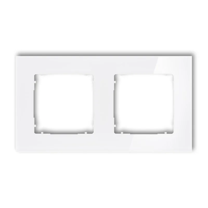 Kwadratowa ramka podwójna serii ICON firmy KARLIK z efektem szkła jest w kolorze białym. Do ramki należy dokupić osobno mechanizm tej samej serii oraz marki. Ramki instalacyjne ICON dostępne są w wersji okrągłej, zaokrąglonej oraz kwadratowej w krotnościach 1-5, w różnych wersjach kolorystycznych.