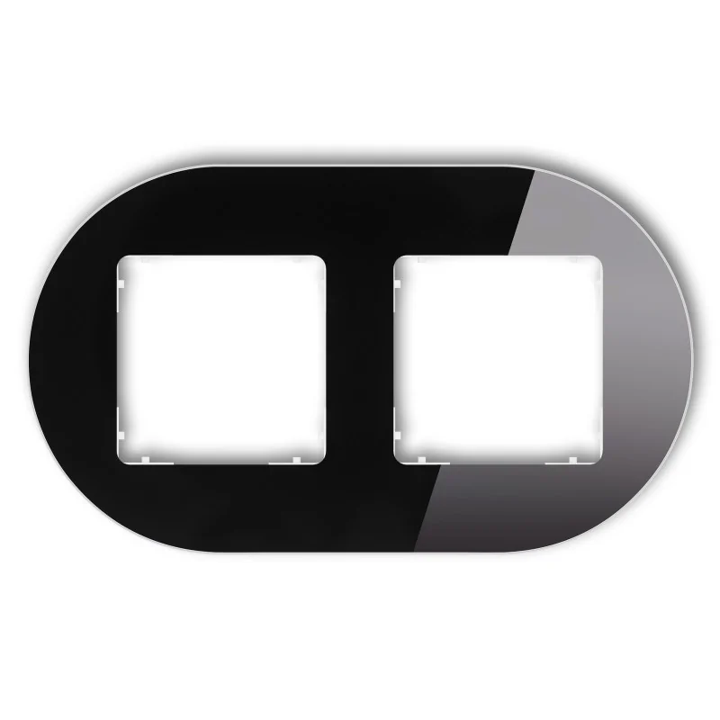 Ramka podwójna okrągła serii ICON firmy KARLIK z efektem szkła w kolorze czarnym z białym spodem. Do ramki należy dokupić osobno mechanizm tej samej serii oraz marki. Ramki instalacyjne ICON dostępne są w wersji okrągłej, zaokrąglonej oraz kwadratowej w krotnościach 1-5, w różnych wersjach kolorystycznych.
