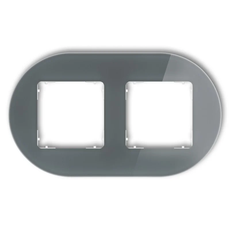 Ramka podwójna okrągła serii ICON firmy KARLIK z efektem szkła w kolorze grafitowym z białym spodem. Do ramki należy dokupić osobno mechanizm tej samej serii oraz marki. Ramki instalacyjne ICON dostępne są w wersji okrągłej, zaokrąglonej oraz kwadratowej w krotnościach 1-5, w różnych wersjach kolorystycznych.