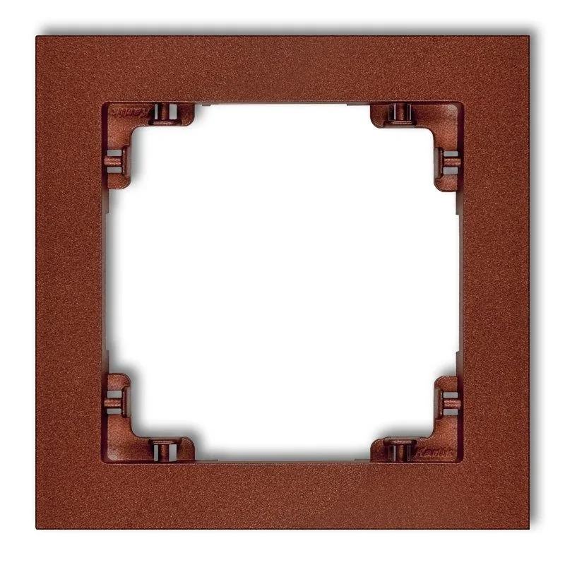 Ramka 9DR-1 to ciekawa propozycja kolorystyczna z linii DECO polskiego producenta osprzętu elektroinstalacyjnego KARLIK. 9DR-1 to ramka uniwersalna w kolorze brązowy metalik. Kolor osłonki prezentuje się niezwykle efektownie - delikatnie się mieniąc. Ramka będzie idealne do całego osprzętu KARLIK utrzymanego w tej tonacji tj. do gniazdek, łączników , pstryczków do światła czy ściemniaczy. Kolor brązowy metalik łatwo utrzymać w czystości. Ramka pasuje do kuchni czy przedpokoju. Model 9DR-1 -przeznaczony jest do montażu podtynkowego.