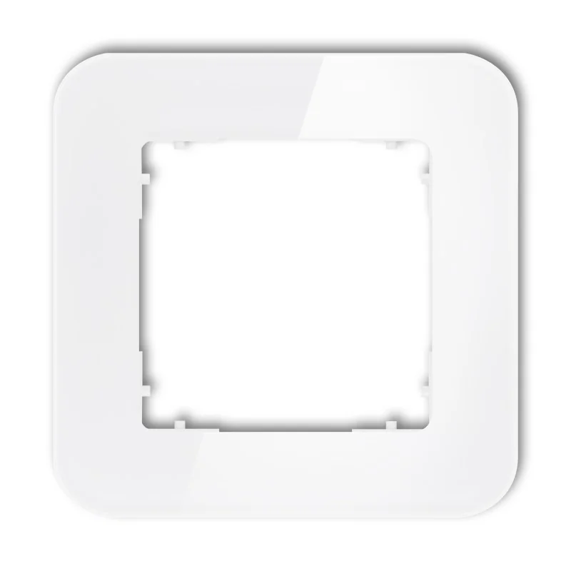 Zaokrąglona ramka pojedyncza serii ICON firmy KARLIK z efektem szkła jest w kolorze białym. Do ramki należy dokupić osobno mechanizm tej samej serii oraz marki. Ramki instalacyjne ICON dostępne są w wersji okrągłej, zaokrąglonej oraz kwadratowej w krotnościach 1-5, w różnych wersjach kolorystycznych.
