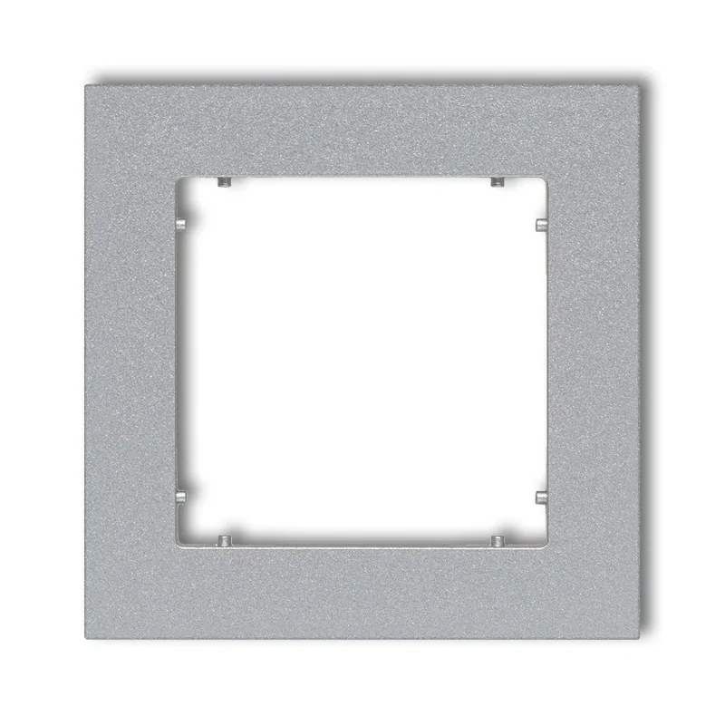 Ramka pojedyncza instalacyjna serii MINI marki KARLIK jest w kolorze srebrny metalik. Przeznaczona jest tylko do włączników i gniazd serii MINI KARLIK. Ramka dostępna jest w różnych kolorach oraz krotnościach- od pojedynczej aż do pięciokrotnej. Włączniki MINI sprzedawane są z ramką pośrednią. Ramki serii MINI to najmniejsze, dostępne na rynku polskim produkty tego typu. Ramkę można montować pionowo, jak i poziomo.