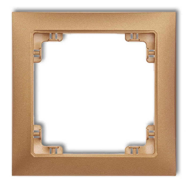 Ramka instalacyjna pojedyncza 8DRSO-1 serii DECO SOFT firmy KARLIK jest w kolorze złotym metalicznym. Mechanizmy i ramki DECO sprzedawane są osobno. Ramki DECO Soft nie są kompatybilne z gniazdami podwójnymi DECO. Do gniazda podwójnego należy kupić ramkę DECO. Produkty DECO SOFT przeznaczone są do montażu pionowego, jak i poziomego.