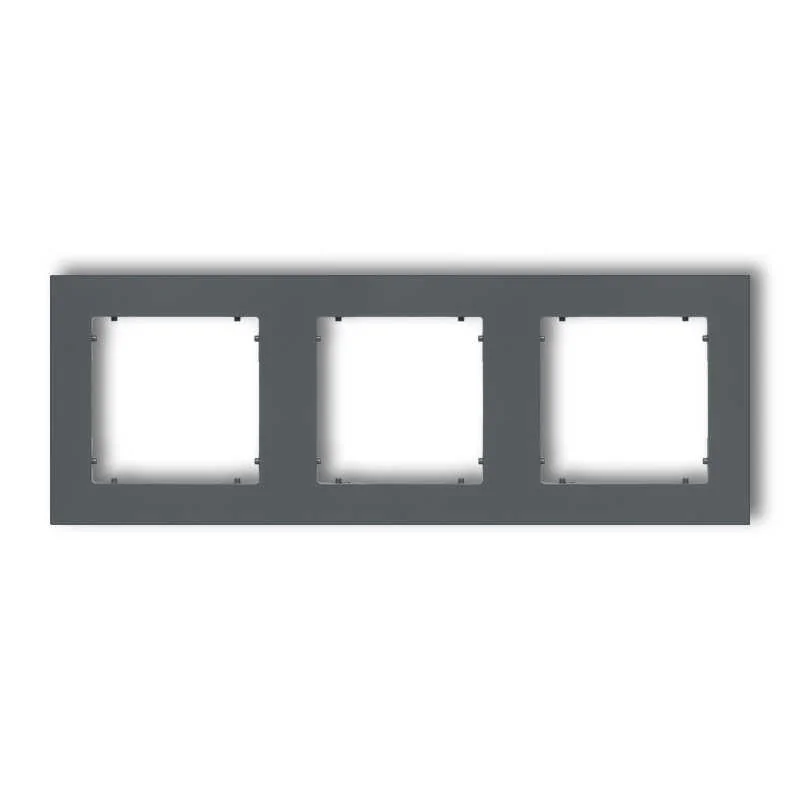 Ramka potrójna instalacyjna serii DECO MINI marki KARLIK jest w kolorze grafitowym matowym. Przeznaczona jest tylko do włączników i gniazd serii DECO MINI KARLIK. Ramka dostępna jest w różnych kolorach oraz krotnościach- od pojedynczej aż do pięciokrotnej. Włączniki DECO MINI sprzedawane są z ramką pośrednią. Ramki serii MINI to najmniejsze, dostępne na polskim rynku produkty tego typu. Ramkę można montować pionowo, jak i poziomo.