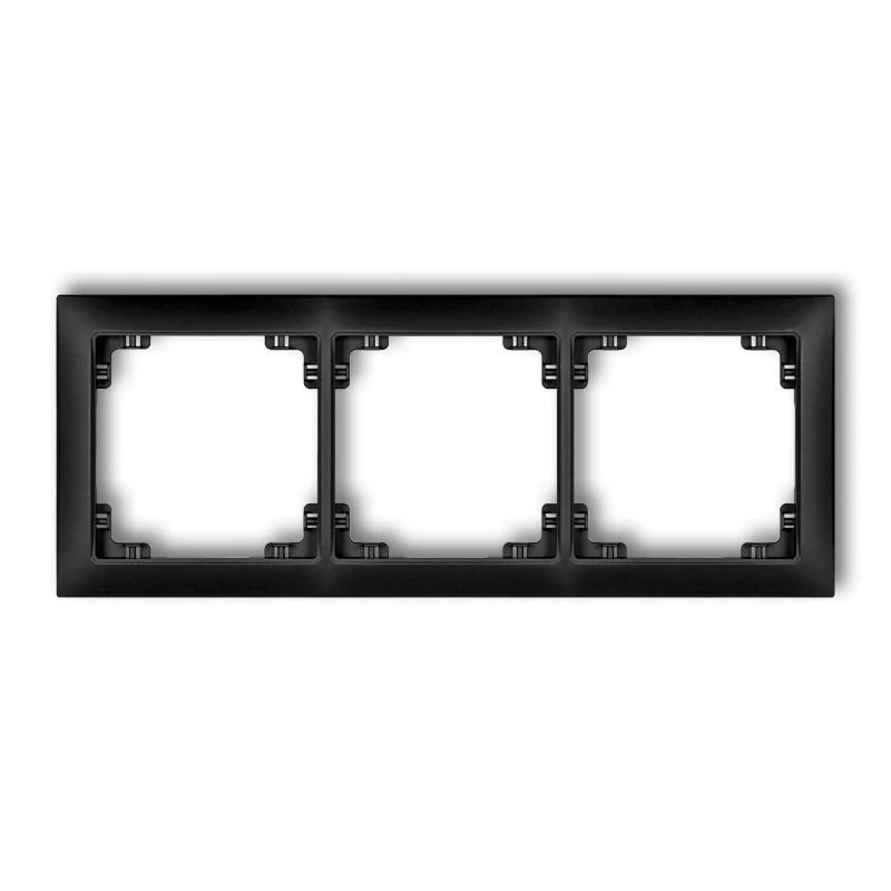 Potrójna ramka w kolorze czarnym matowym serii DECO SOFT firmy KARLIK. Ramki DECO Soft nie są kompatybilne z gniazdami podwójnymi DECO. Do gniazda podwójnego należy kupić ramkę DECO.