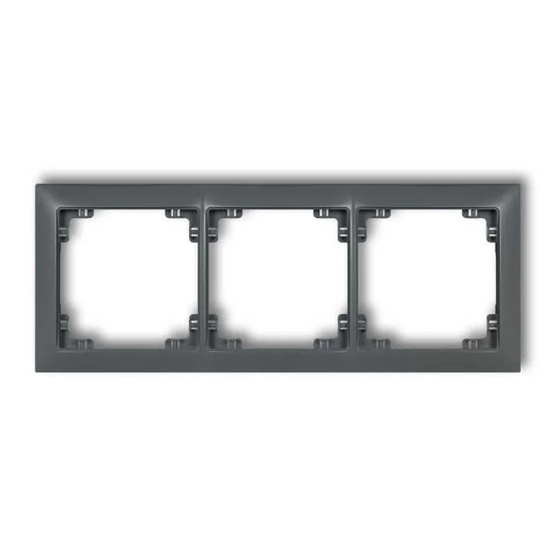 Ramka instalacyjna potrójna 28DRSO-3 serii DECO SOFT firmy KARLIK jest w kolorze grafitowy mat. Mechanizmy i ramki DECO sprzedawane są osobno. Ramki DECO Soft nie są kompatybilne z gniazdami podwójnymi DECO. Do gniazda podwójnego należy kupić ramkę DECO. Produkty DECO SOFT przeznaczone są do montażu pionowego, jak i poziomego.