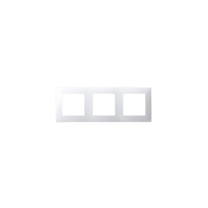 Potrójna ramka instalacyjna serii SZAFIR marki OSPEL w kolorze białym. Do ramki należy dokupić osprzęt tej samej serii oraz firmy.
