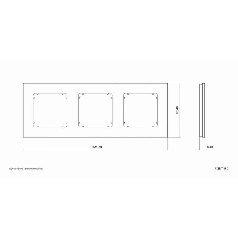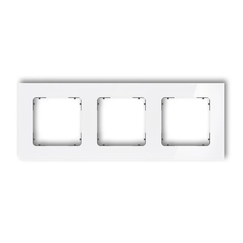 Ramka potrójna kwadratowa serii ICON firmy KARLIK z efektem szkła w kolorze białym z grafitowym matowym spodem. Do ramki należy dokupić osobno mechanizm tej samej serii oraz marki. Ramki instalacyjne ICON dostępne są w wersji okrągłej, zaokrąglonej oraz kwadratowej w krotnościach 1-5, w różnych wersjach kolorystycznych.