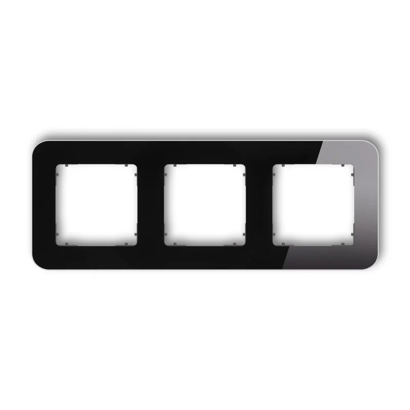 Ramka potrójna zaokrąglona serii ICON firmy KARLIK z efektem szkła w kolorze czarnym z grafitowym spodem. Do ramki należy dokupić osobno mechanizm tej samej serii oraz marki. Ramki instalacyjne ICON dostępne są w wersji okrągłej, zaokrąglonej oraz kwadratowej w krotnościach 1-5, w różnych wersjach kolorystycznych.