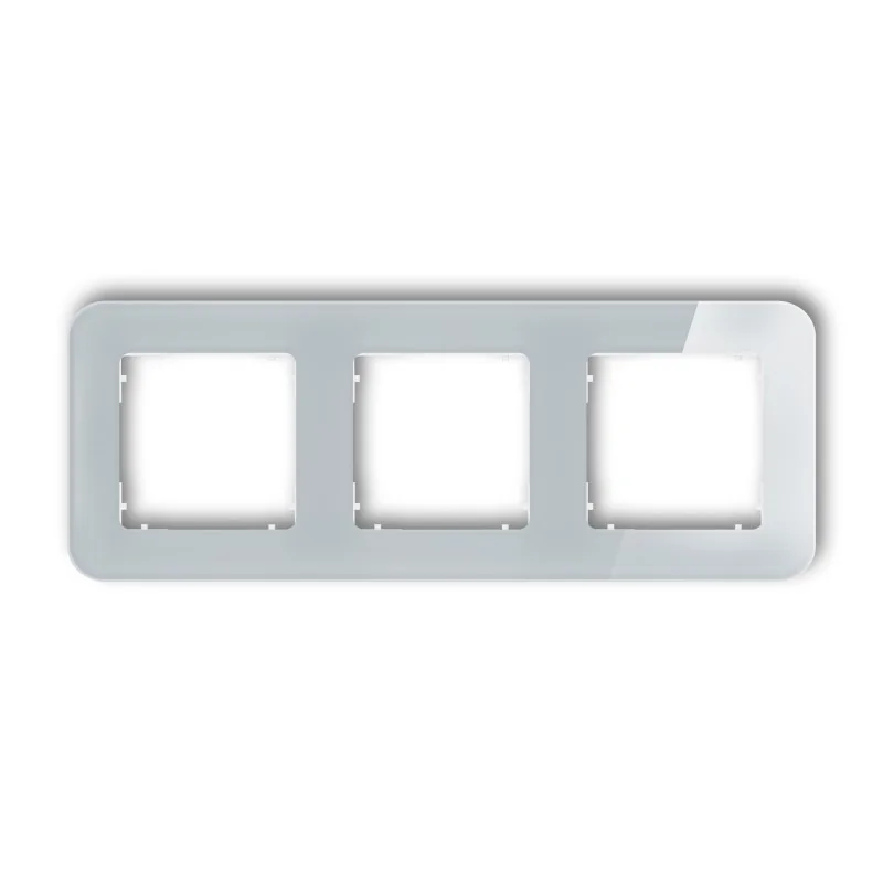 Ramka potrójna zaokrąglona serii ICON firmy KARLIK z efektem szkła w kolorze szarym z białym spodem. Do ramki należy dokupić osobno mechanizm tej samej serii oraz marki. Ramki instalacyjne ICON dostępne są w wersji okrągłej, zaokrąglonej oraz kwadratowej w krotnościach 1-5, w różnych wersjach kolorystycznych.
