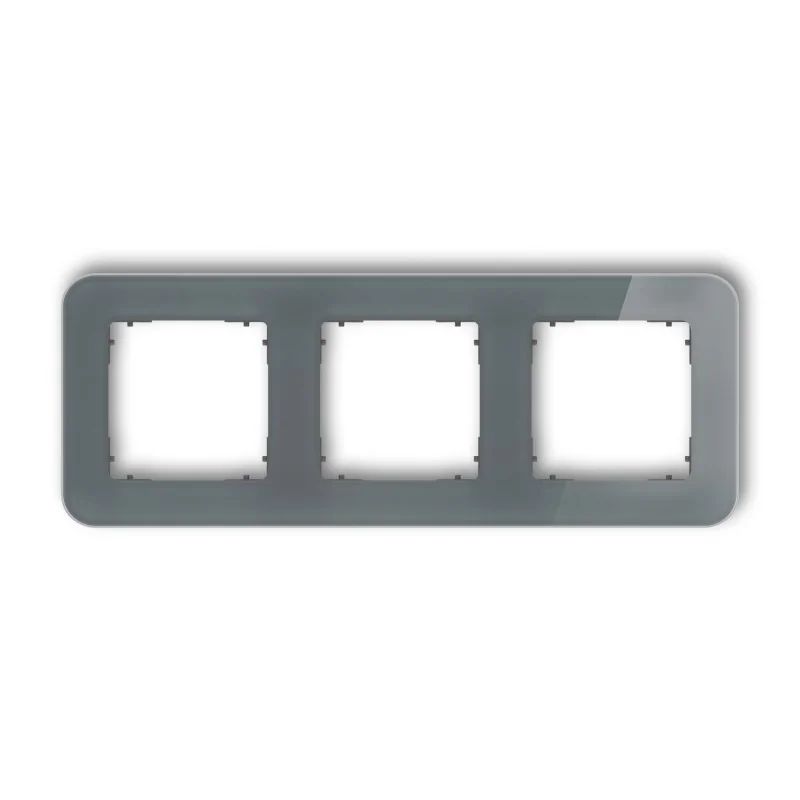 Ramka potrójna zaokrąglona serii ICON firmy KARLIK z efektem szkła w kolorze grafitowym z grafitowym matowym spodem. Do ramki należy dokupić osobno mechanizm tej samej serii oraz marki. Ramki instalacyjne ICON dostępne są w wersji okrągłej, zaokrąglonej oraz kwadratowej w krotnościach 1-5, w różnych wersjach kolorystycznych.
