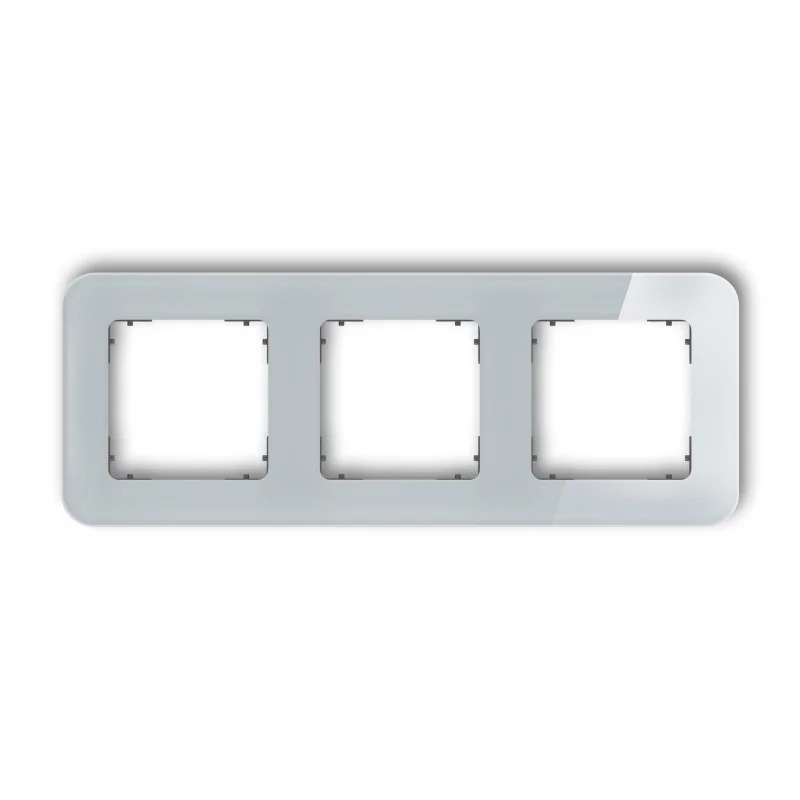 Ramka potrójna zaokrąglona serii ICON firmy KARLIK z efektem szkła w kolorze szarym z grafitowym matowym spodem. Do ramki należy dokupić osobno mechanizm tej samej serii oraz marki. Ramki instalacyjne ICON dostępne są w wersji okrągłej, zaokrąglonej oraz kwadratowej w krotnościach 1-5, w różnych wersjach kolorystycznych.