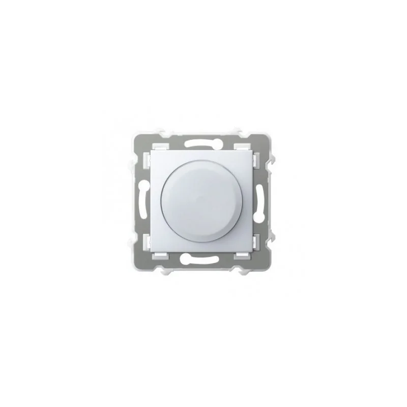 Ściemniacz uniwersalny przystosowany do obciążenia żarowego, halogenowego oraz LED koloru białego serii SZAFIR firmy OSPEL, przeznaczony do montażu podtynkowego. Ściemniacz wymaga dokupienia ramki serii SZAFIR firmy OSPEL.