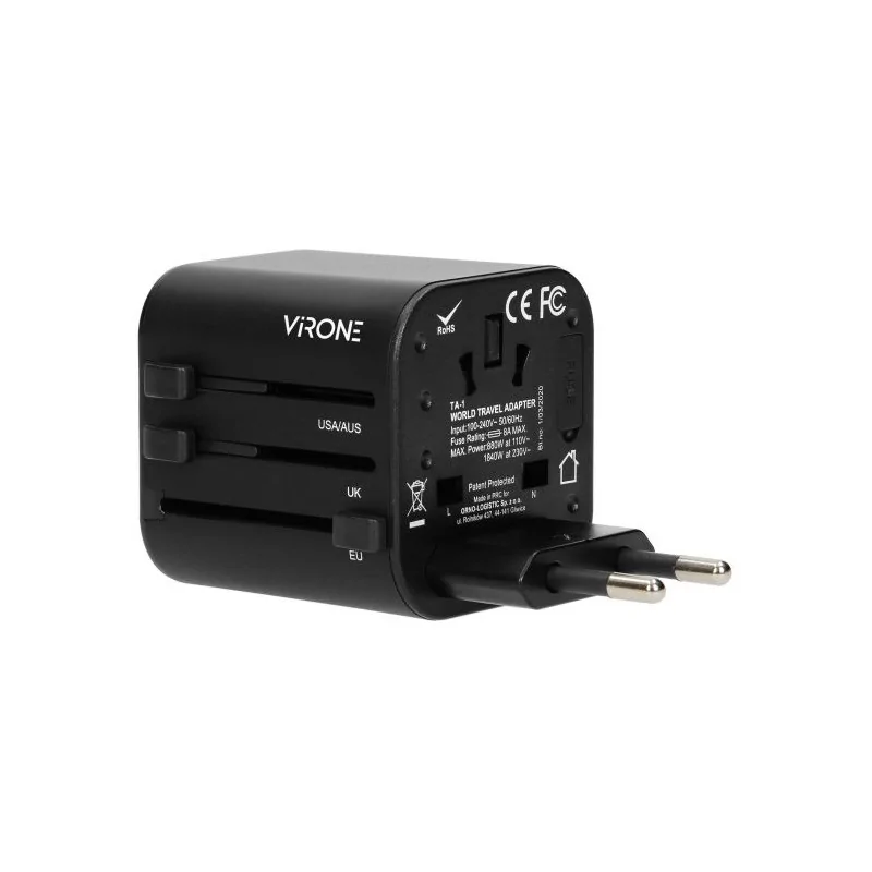 Uniwersalny i niezastąpiony w podróży adapter TA-1 (przejściówka) to produkt marki ORNO, który umożliwia swobodne korzystanie z gniazdek elektrycznych na całym świecie m.in.: w Australii, Chinach, Europie, Wielkiej Brytanii, USA, Japonii, etc. Przejściówka podróżna przystosowana jest na napięcie 240V, oraz prąd max. 8A.