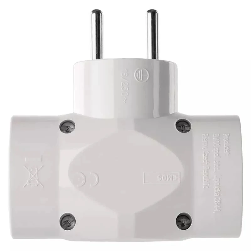 Potrójny rozgałęźnik z uziemieniem EMOS znajdzie zastosowanie w każdym miejscu, w którym istnieje potrzeba podłączenia większej ilości urządzeń. Biały tradycyjny kolor dopasuje się do każdej aranżacji. Stopień odporności rozgałęźnika to IP20, a jego prąd znamionowy to 10A.