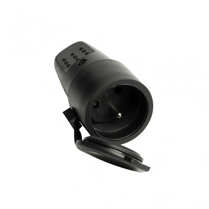 Czarne gniazdo gumowe z zatyczką 16A IP44 ELEKTRO