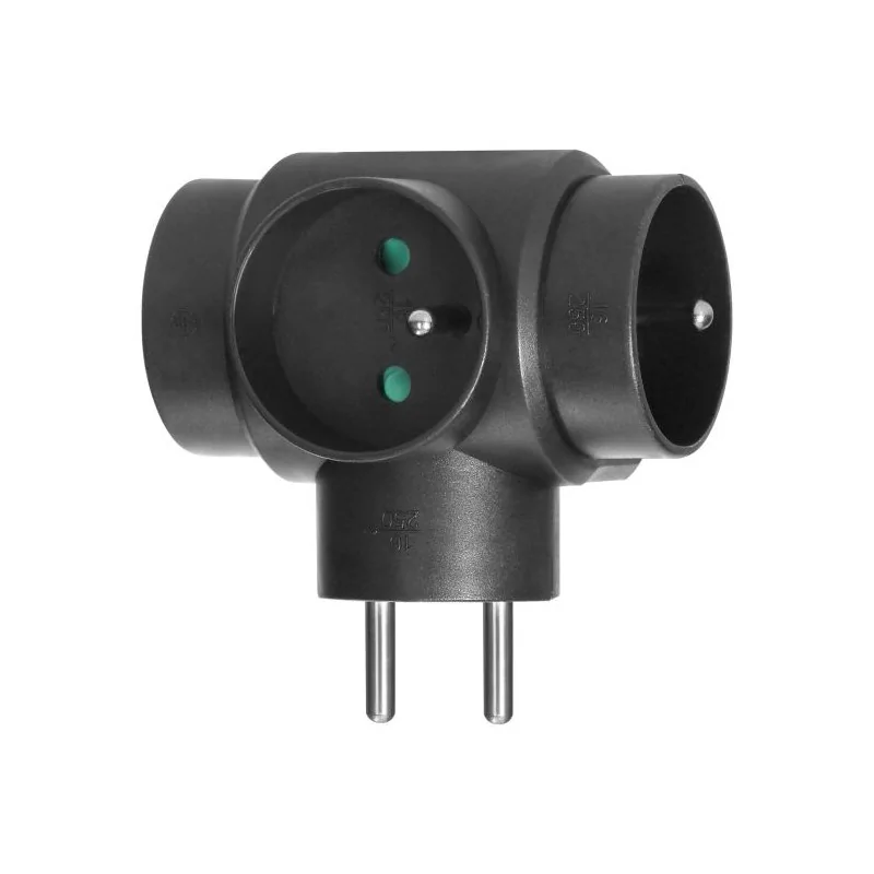 Potrójny, czarny rozgałęźnik firmy ORNO, z okrągłymi gniazdami z bolcem. Przydatny zawsze wtedy, gdy potrzeba więcej gniazd prądowych. Przystosowany jest na 3 gniazda z uziemieniem. Dostępny jest również w kolorze białym.
