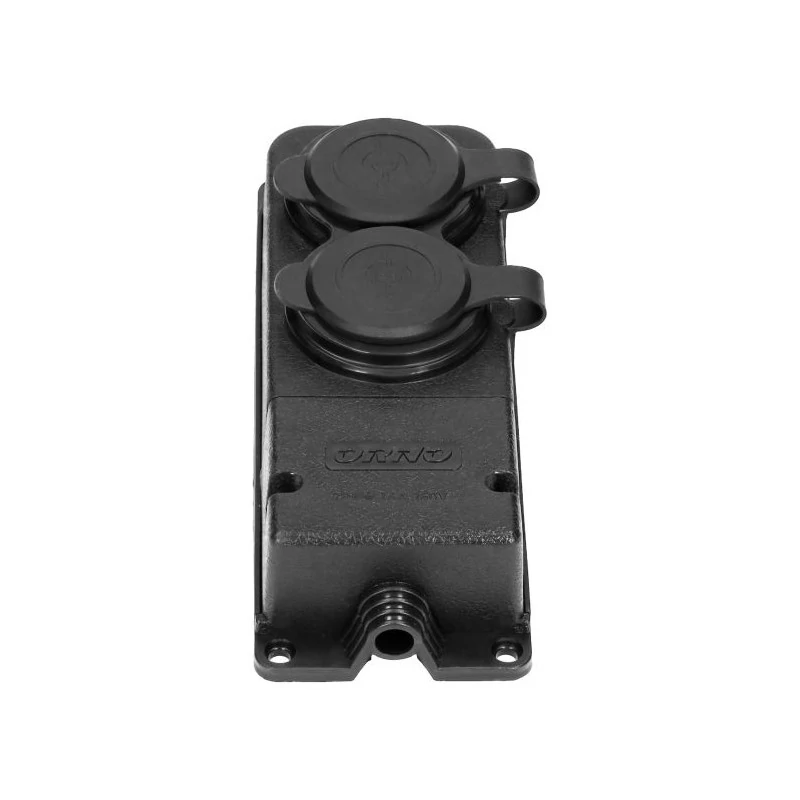 Rozdzielacz warsztatowy o stopniu szczelności IP44. Rozgałęźnik posiada 2 gniazda z uziemieniem typu Schuko (2P+Z) z gumową osłoną przeciw rozbryzgom wody i pyłom. Posiada otwór ułatwiający zawieszenie w bezpiecznym miejscu oraz 4 otwory na śruby służące do stałego montażu na stanowisku pracy. Złącze kablowe ukryto pod odkręcaną pokrywą. Do przeprowadzenia kabla służy wbudowany, gumowy przepust kablowy. Rozdzielacz posiada wyjątkowo niski 5cm profil. Model wysoce trwały odporny na uderzenia , uniepalniony idealny do warsztatu czy garażu.