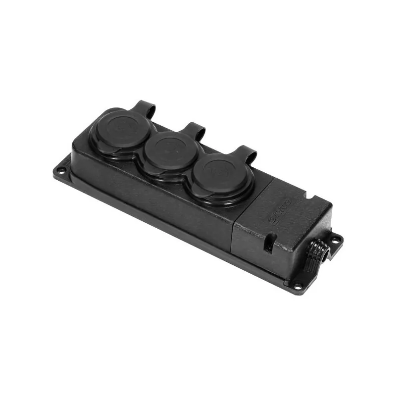 OR-AE-13166 Potrójny odporny na uderzenia czarny rozgałęźnik bryzgoszczelny IP44 ORNO