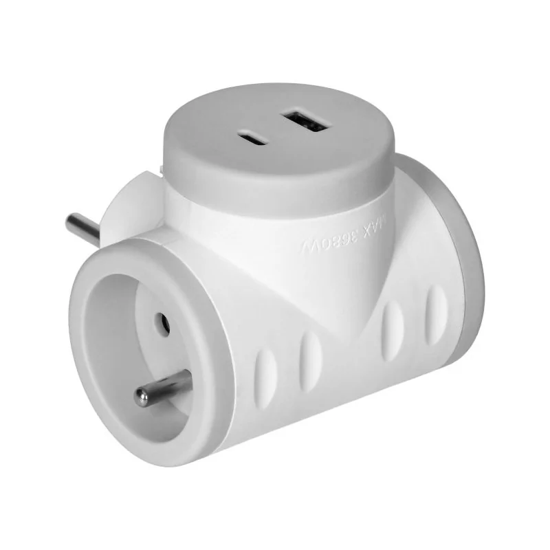 Rozgałęźnik elektryczny pozwala na jednoczesne podpięcie dwóch urządzeń elektrycznych oraz korzystanie z gniazda USB A oraz USB C. Gniazda ładujące USB wyposażone są w technologię Quick Charge 2.0 PD, która umożliwia szybkie i bezpieczne ładowanie urządzeń, a wszystko to dzięki zapewnieniu kontroli napięcia i prądu podczas ładowania. Urządzenie przystosowane jest do pracy z prądem 16 A - 230 V i wytrzymuje obciążenie maks. 3680 W. Dostępna wersja kolorystyczna - biało-szara.