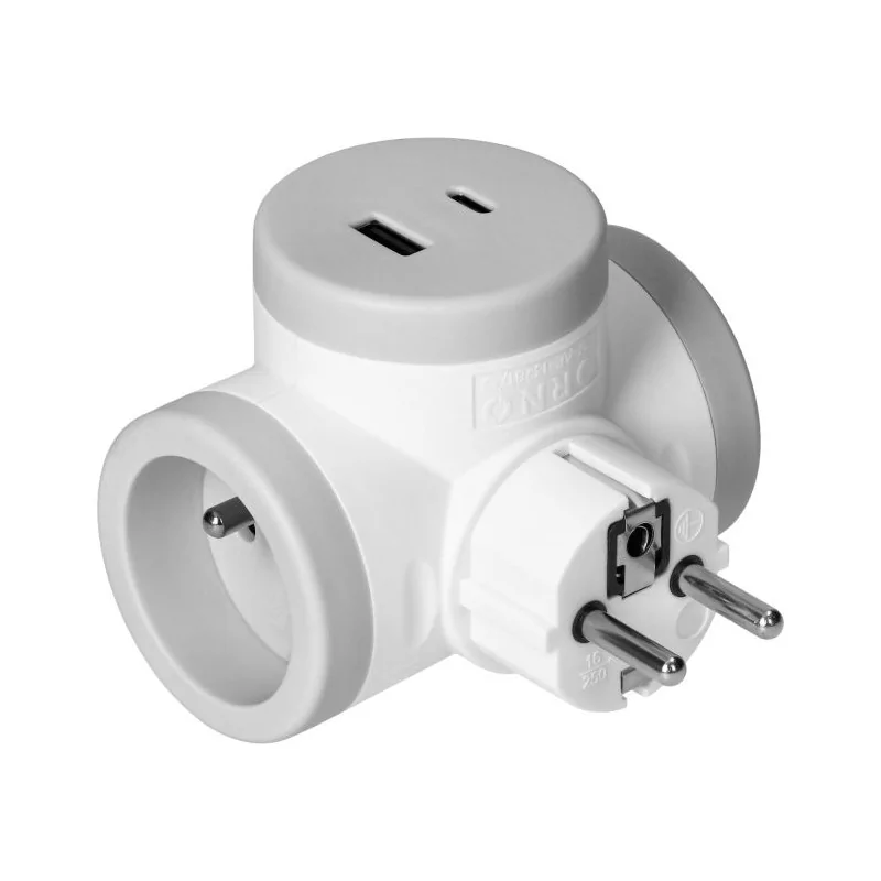 OR-AE-13281/G Rozgałęźnik podwójny z szybką ładowarką USB-A i USB-C ORNO