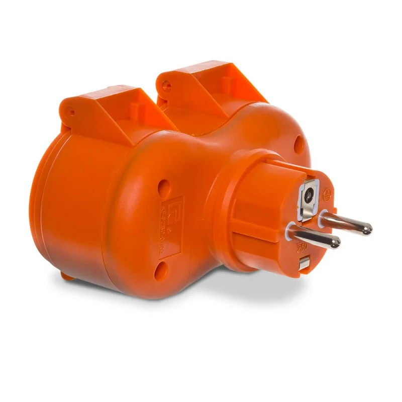 Rozgałęźnik wtyczkowy R-270P wykonany jest z tworzywa sztucznego, w kolorze pomarańczowym. Urządzenie przeznaczone jest do podłączenia kilku sprzętów do jednego gniazda. Rozgałęźnik sprawdzi się w pomieszczeniach, gdzie znajduje się dużo urządzeń zasilanych prądem, będą to np. kuchnie, a także biura, szczególnie tam, gdzie występuje niewiele źródeł prądu. Rozgałęźnik wtyczkowy jest funkcjonalny i odporny na uszkodzenia, posiada styk ochronny. Model posiada podwyższony stopień ochrony IP44 - świetny do wykorzystania w pomieszczeniach narażonych na kurz czy wilgoć np. w warsztach, magazynach czy piwnicach. Produkt posiada klapki ochronne, które pozwalają zakryć nieużywane gniazdo, co umożliwia bezpieczne użytkowanie rozgałęźnika. Może być stosowany na zewnątrz.
