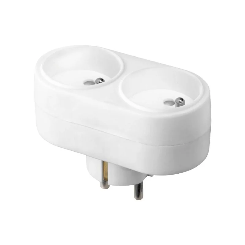 Biały rozgałęźnik firmy ORNO z 2 gniazdami euro. Pozwala nam na podłączenie dwóch urządzeń w pomieszczeniu z jednym pojedynczym gniazdem. Moc urządzenia nie może przekraczać 3680W. Występuje w kolorze białym. Ten model dostępny jest również w wersji 1,2 i 3.