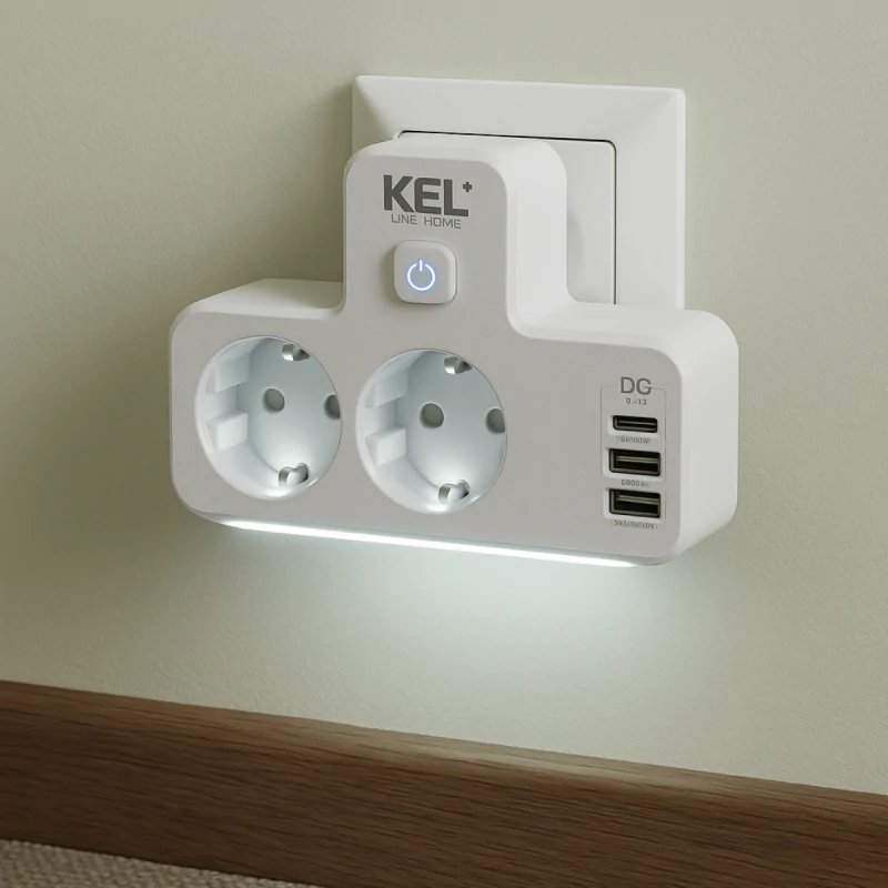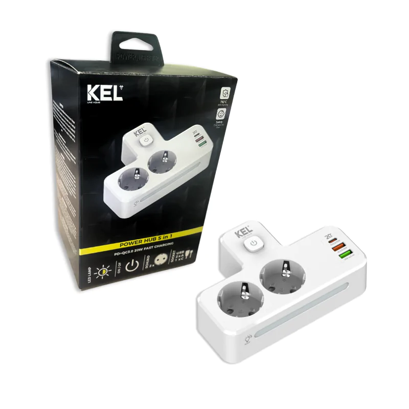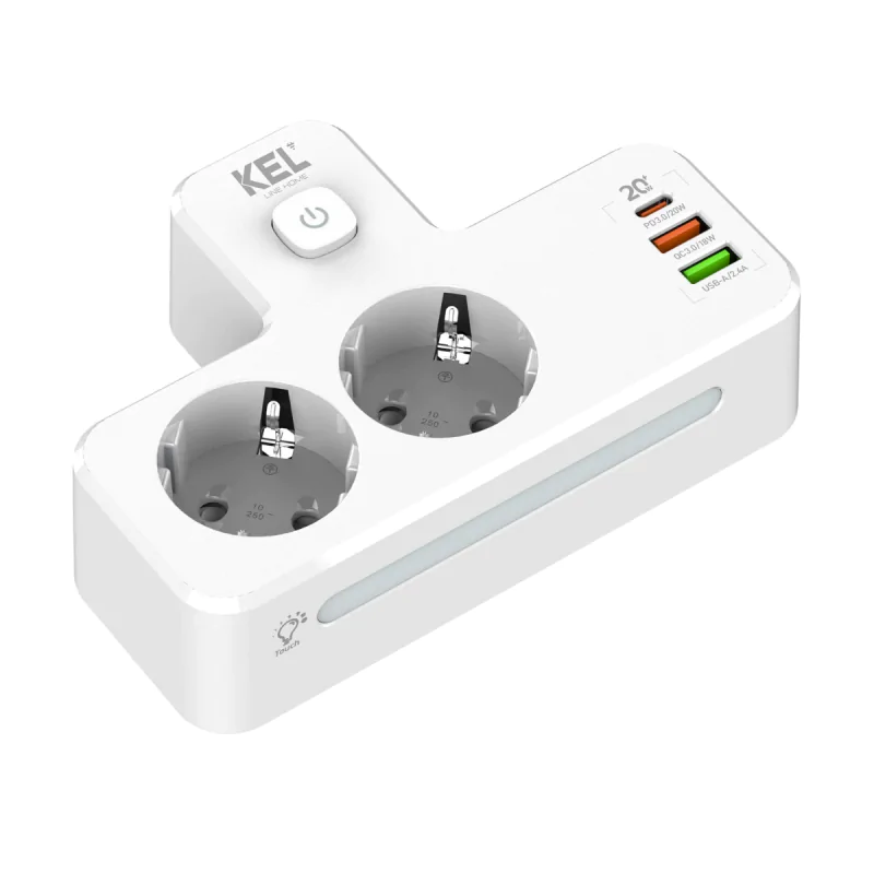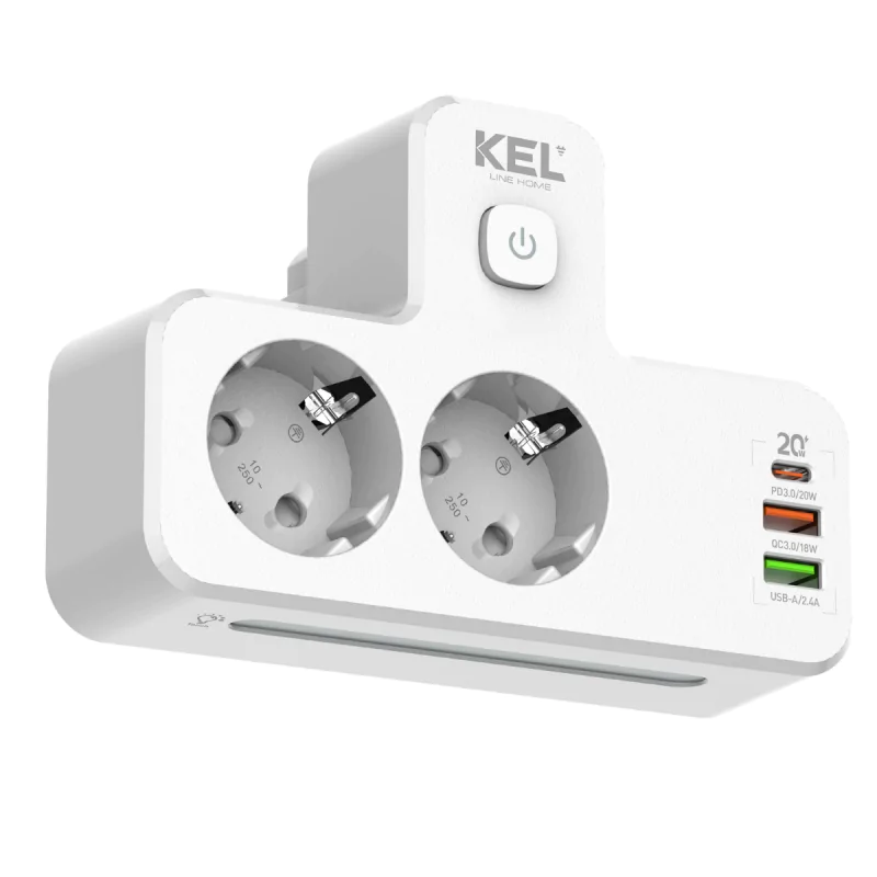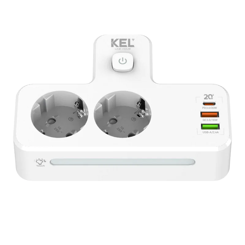 Rozgałęźnik podwójny KEL to praktyczne i nowoczesne rozwiązanie, które łączy w sobie wygodę, bezpieczeństwo i estetykę. Dzięki dodatkowym gniazdom oraz wbudowanemu portowi USB rozgałęźnik pozwala szybko i bezproblemowo podłączyć niezbędne urządzenia, bez potrzeby korzystania z wielu zasilaczy. Lampka oraz włącznik zapewniają pełną kontrolę nad działaniem, co przekłada się na większy komfort codziennego użytkowania. Lampka działa na dotyk.
