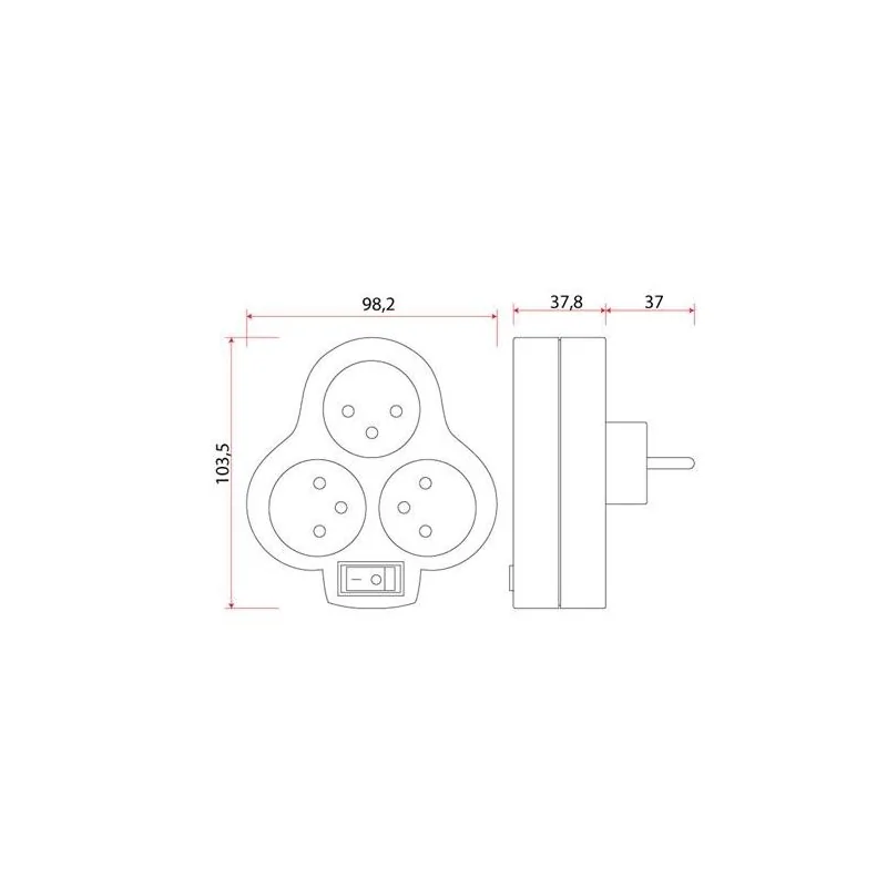Potrójny rozgałęźnik do gniazdka z wyłącznikiem