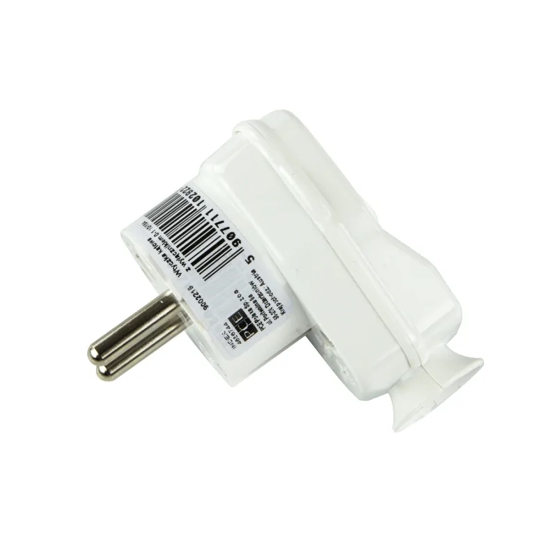 Wtyczka kątowa 9002215 jest w kolorze białym. Wtyczka kątowa jest świetnym rozwiązaniem, jeżeli posiadasz gniazdo w trudno dostępnym miejscu. Biała wtyczka jest wyposażona w wyłącznik, dzięki czemu może być cały czas podłączona do gniazdka. Prąd znamionowy wtyczki wynosi 16A, a jej napięcie zasilania jest równe 250V.