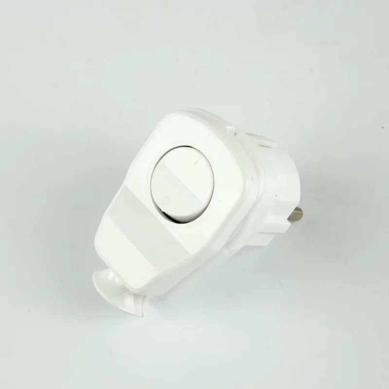 Biała wtyczka kątowa z wyłącznikiem