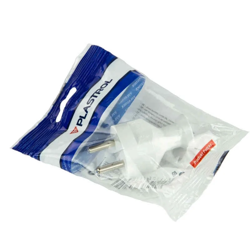 Wtyczka prosta biała marki PLASTROL przeznaczona do gniazd z uziemieniem.