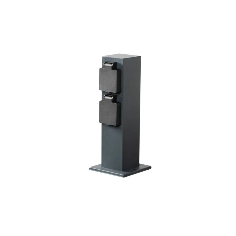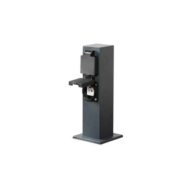 Niezwykle elegancki słupek przyłączeniowy DASTO ze stali nierdzewnej w antracytowym ciemnym kolorze. Dzięki ich prostej estetyce można je wkomponować w każdy typ ogrodu. Podłączysz do nich zraszacz, kosiarkę, grill elektryczny, girlandę świetlną, zimowe lampki na choinkę zewnętrzną lub inne, przenośne oświetlenie, które będzie Ci akurat potrzebne. Słupek posiada 2 gniazda typu E- klasyczne z uziemieniem. Wysokość słupka to 25 cm.