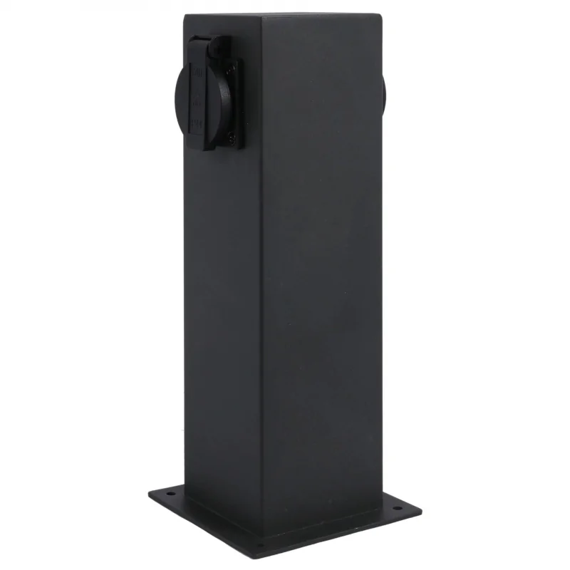 Słupek ogrodowy ELEKTRI marki POLUX-GOLDLUX, z gniazdem elektrycznym ma zastosowanie niemal w każdym ogrodzie wszędzie tam gdzie istnieje potrzeba podłączenia urządzeń elektrycznych, oświetlenia ogrodowego np. girlandy ogrodowej. Kwadratowa oprawa posiada dwa gniazda elektryczne. Prosty design, sprawia iż oprawa posiada uniwersalne zastosowanie, a wysokiej jakości materiały użyte przy ich produkcji zapewnią długą i bezawaryjną pracę. Słupek zewnętrzny w kolorze czarnym mierzy 28cm wysokości. Przystosowany jest do tradycyjnego napięcia.