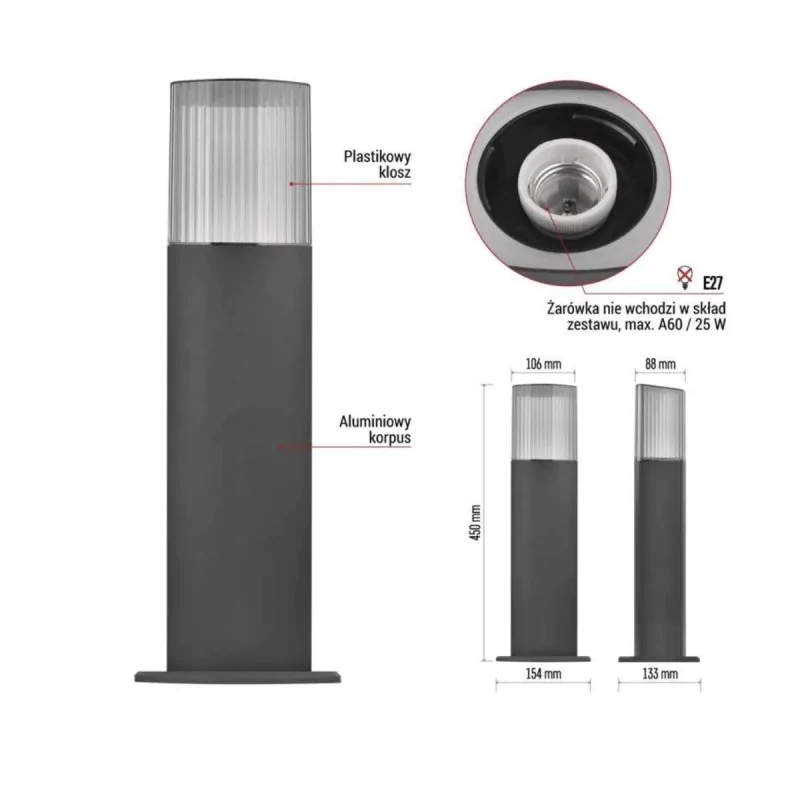 Lampa słupek ogrodowy o wysokości 60cm grafitowy E27 DALLAS 315984 POLUX
