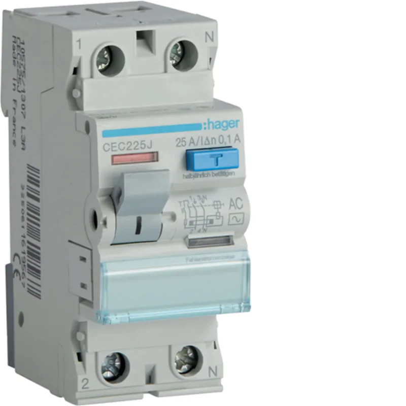 CEC225J Wyłącznik różnicowoprądowy 2P 25A 100mA typ AC HAGER
