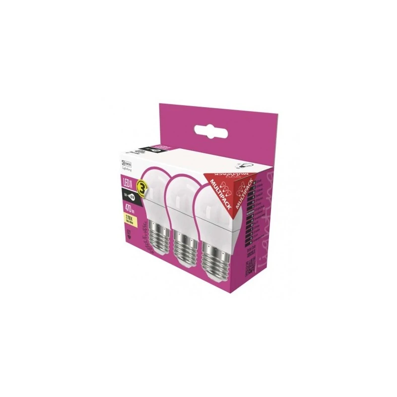 Komplet 3 żarówek LED mini globe 5W-40W 470lm E27 ciepła biel 3lata EMOS ZQ1120.3