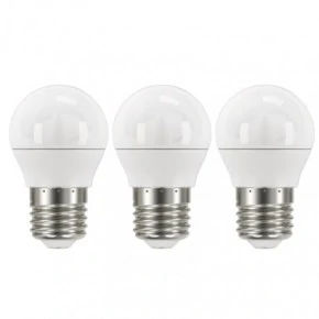 Led-owa żarówka z dużym trzonkiem E27 o kształcie małej kulki działa z mocą 5W, a jej odpowiednikiem jest tradycyjne źródło światła o mocy 40W. Produkt posiada trzonek E27 i świeci ciepłym białym światłem o temperaturze barwowej 2700K i strumieniu świetlnym 470 lumenów. Żarówka led wyposażona została w mleczny klosz. Szacowany czas działania żarówki to około 30000h oraz 25000 cykli włączeń i wyłączeń. Model rozsyła światło pod kątem 220 stopni. Żarówka posiada wydłużoną 3 letnią gwarancję. Komplet składa się z 3 żarówek.