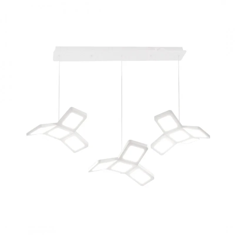 Oświetlenie wiszące PIXELS producenta EKO-LIGHT, charakteryzuje się współczesnym designem, który przypadnie do gustu miłośnikom elegancji w nowatorskim wydaniu. Charakterystyczne trzy zwisy w kształcie wiatraków otoczonych metalowym wykończeniem przyciągają wzrok i pozwalają nadać wnętrzom wyjątkowego charakteru. Ze względu na swoją funkcjonalność lampa wpasuje się odpowiednio do kuchni, jadalni, przestrzennych salonów, a nawet modnych restauracjach. Lampa wisząca z trzema źródłami światła, których wysokość można regulować na przewodzie - do 90 cm, dzięki czemu nie ma problemu z dopasowaniem jej do pomieszczeń niskich oraz wysokich. Została wyposażona w moduły LED o mocy 75W, które zapewniają niskie zużycie energii, natomiast strumień świetlny o wartości aż 5250lm zapewnia doskonałe oświetlanie wnętrz. Oprawa gwarantuje komfort użytkowania dzięki neutralnej barwie światła równej 4000K. Listwa mierzy 70cm szerokości i 23cm długości. Produkt wykonano z metalu oraz akrylu i dostępny jest w kolorze białym. Produkt objęty jest 24-miesięczną gwarancją."