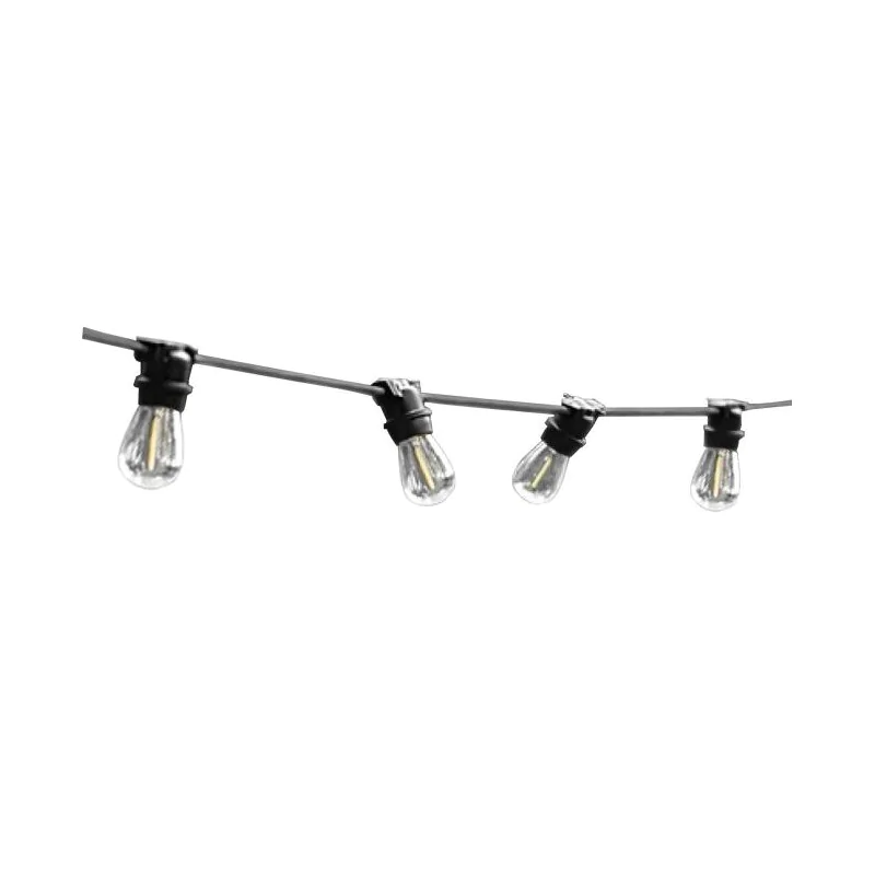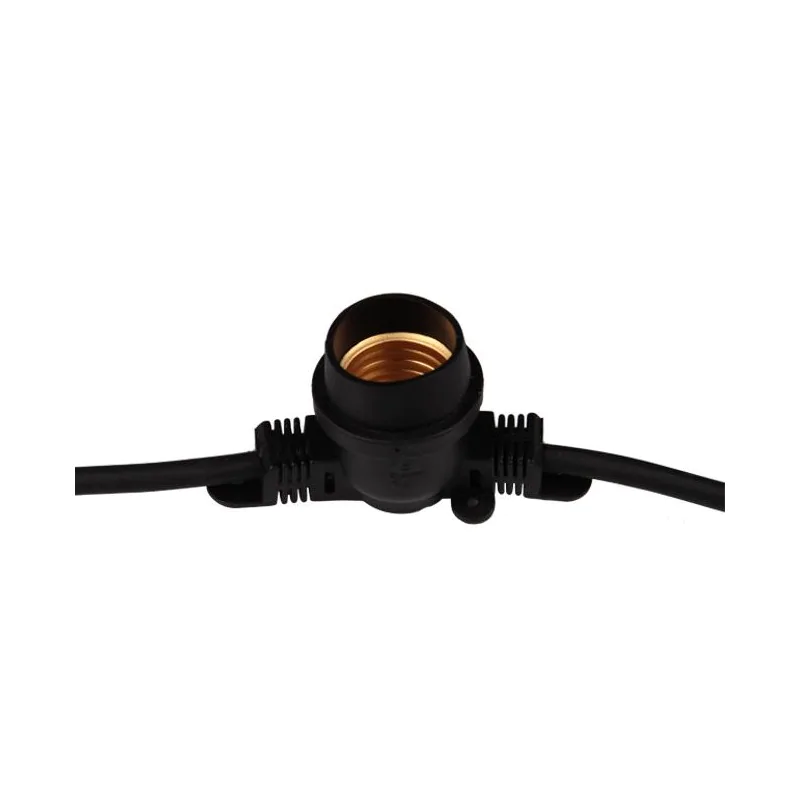 Czarna girlanda LED marki LVT, to cudowne oświetlenie naszego tarasu, altany czy pokoju. Posiada podwyższony stopień ochronności IP44, więc odporna będzie na różne warunki pogodowe. Dzięki wymiennym źródłom światła o gwincie E27 dobierzemy odpowiednią do naszych oczekiwań moc i barwę światła. Pamiętajmy, że żarówki nie są dołączone do kompletu. Oprawki w girlandzie LED rozmieszczone są w odległości 100 cm. Oświetlenie, które zasilimy sieciowo, przez cały rok stworzy nam wyjątkowo magiczny klimat. Produkt objęty 2-letnią gwarancja.