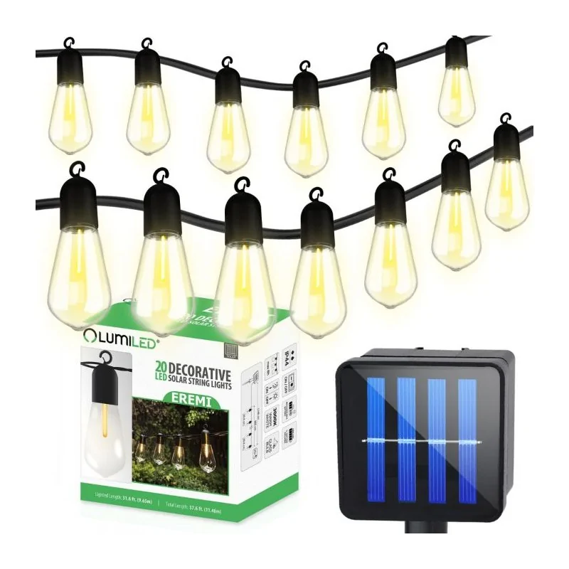 Girlanda solarna ogrodowa 20xLED z ozdobnymi żarówkami EDISON ST58 11,48m Ciepła 3000K EREMI LUMSOL0015 LUMILED